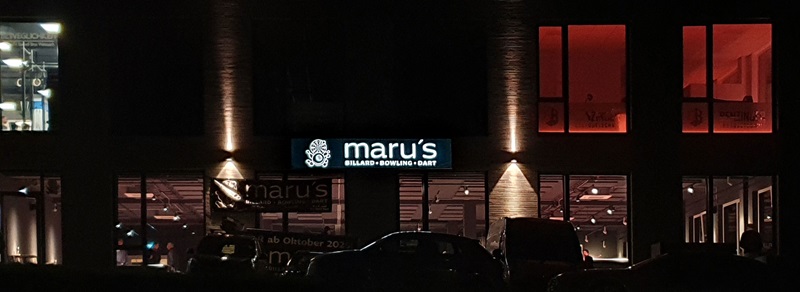 Neben Billard gibt’s im neuen maru’s ebenfalls wieder E-Dart und Steel-Dart sowie jetzt auch neu eine topmoderne Bowlinganlage. Und das alles in klimatisierten Räumen, mit gemütlicher Bar und jeder Menge Platz für Spaß, Sport und gute Gesellschaft – das ganze Jahr über.